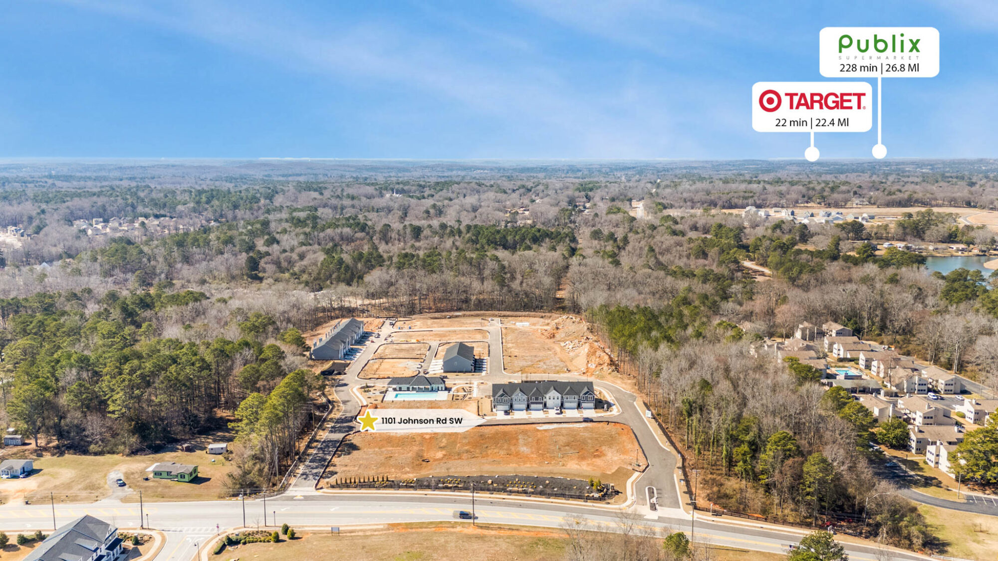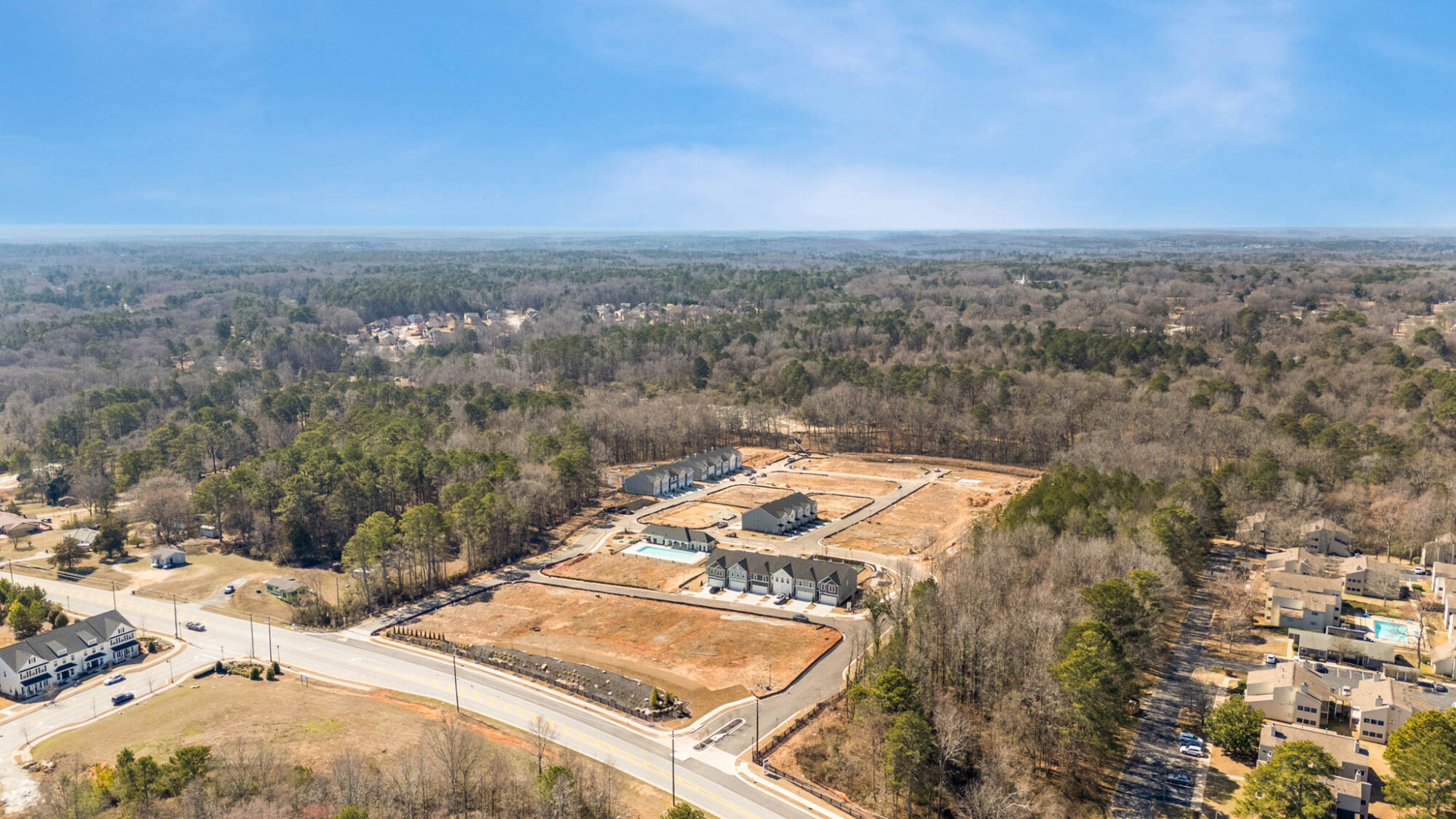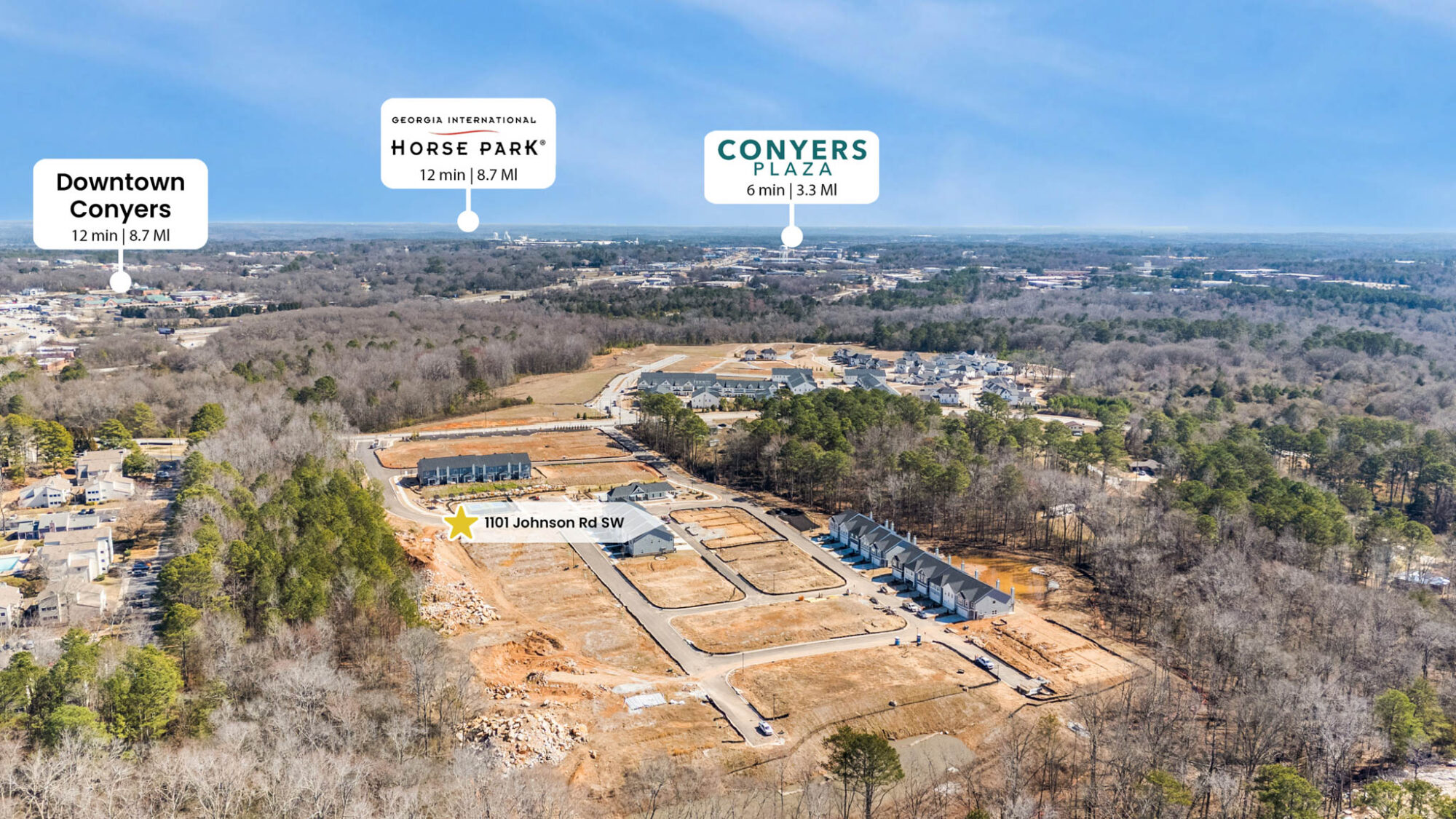 Presenting a stunning collection of two- story townhomes – with the city lights of Atlanta just 25 miles west and the down-home charm of Olde Town Conyers just 5 minutes east – homeowners in Klondike Reserve enjoy the best of both worlds. An ideal location for commuting professionals, “coming home” takes on new meaning at Klondike Reserve. Poised within a scenic Southern setting, towering pines and stands of hardwood trees surround the community in a tranquil embrace. Green spaces further enhance the allure, holding the promise of impromptu picnics and pickup games of flag football on the weekends. At the heart of it all, an exciting amenity package – showcasing a pool, cabana, two lighted pickleball courts, a dog park and a community fire pit – is sure to serve as The Reserve’s bustling social hub. When out of the office, go wherever the day takes you! You can take your pick of relaxing poolside or in the comfort of your own home, strolling about Conyers’ historic district for a bit of adventure, or taking a road trip into Augusta, GA; Columbia, SC; or Birmingham, AL without ever leaving I-20.